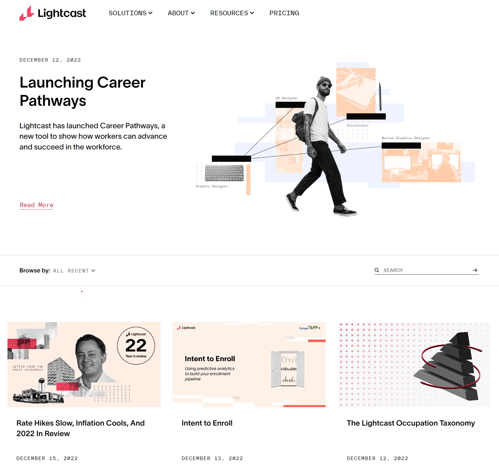 Lightcast uses multiple data sources to provide relevant labor market data and analytics to its users, including traditional labor market information, job posting analytics, compensation data, skills & titles, demographic data, program demand, etc. Visit Lightcast's blog for the latest labor market information and relevant market trends: Lightcast Blog.